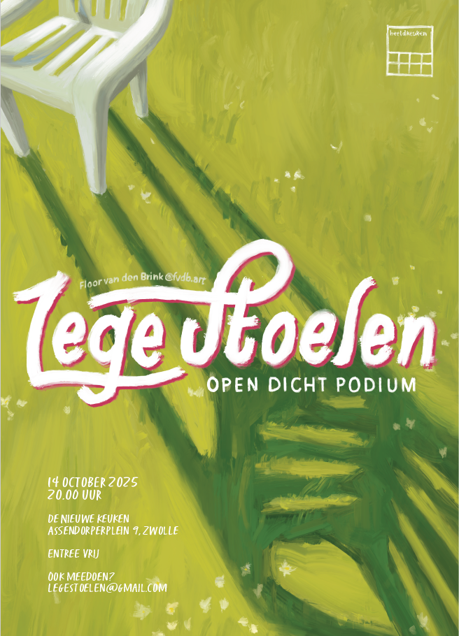 Welkom bij Lege Stoelen! Sinds 2019 verwelkomen wij iedere tweede dinsdag van de maand schrijvers, muzikanten en overige podiumbeesten in het sfeervolle De Nieuwe Keuken in Zwolle.